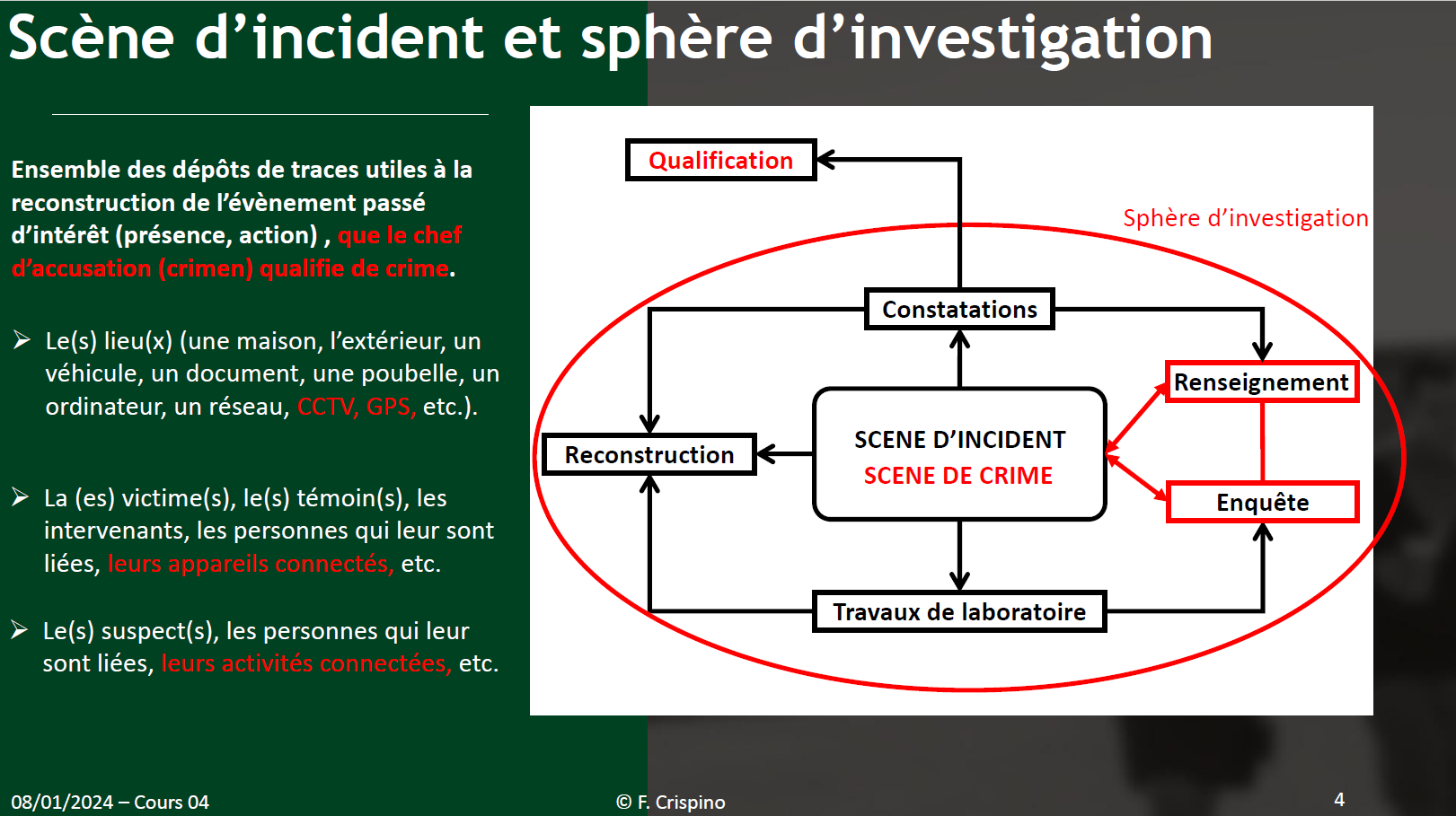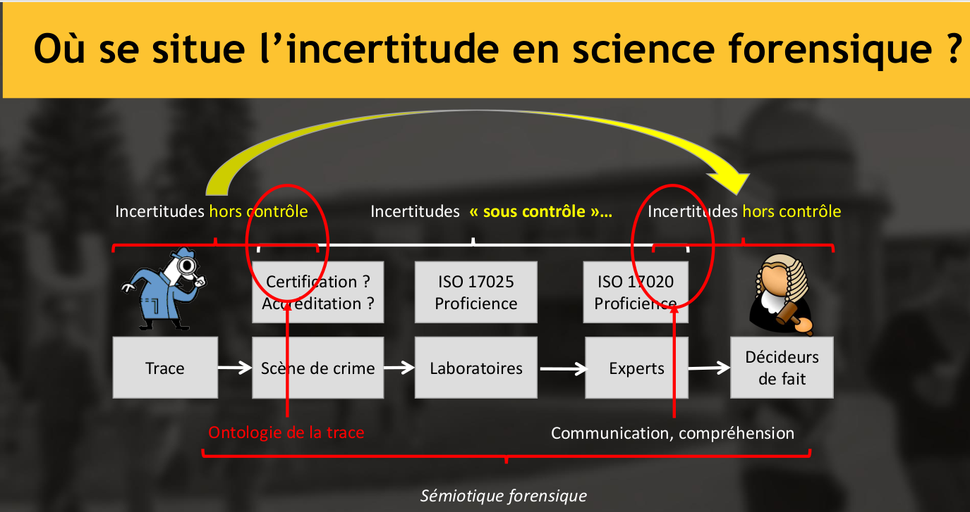Quant à l’investigation criminelle, s’il manque encore une méthode d’enquête (le procès Jubillar a mis le doigt dessus), les quelques universités qui s’intéressent à la science forensique (dans le monde francophone l’école des sciences criminelles déjà citée et l’Université du Québec à Trois-Rivières, dans le monde anglophone l’UTS à Sydney) ont mené des travaux intéressants. C’est le cas de la sphère d’investigation dont la prise en compte est bien utile lorsque la scène de crime n’est pas identifiée (cas notamment des affaires Emile et Jubillar) et des phases du travail d’investigation où se situe l’incertitude, phases qui seront logiquement attaquées par les avocats de la défense lors du procès pénal, l’affaire Jubillar en étant l’exemple le plus récent. (Remerciements au professeur Crispino pour les deux illustrations précédentes). Applicable à l’investigation criminelle et tout aussi utile au directeur sûreté, la déclaration de Sydney montre qu’une mobilisation internationale de chercheurs et de praticiens peut être fructueuse.